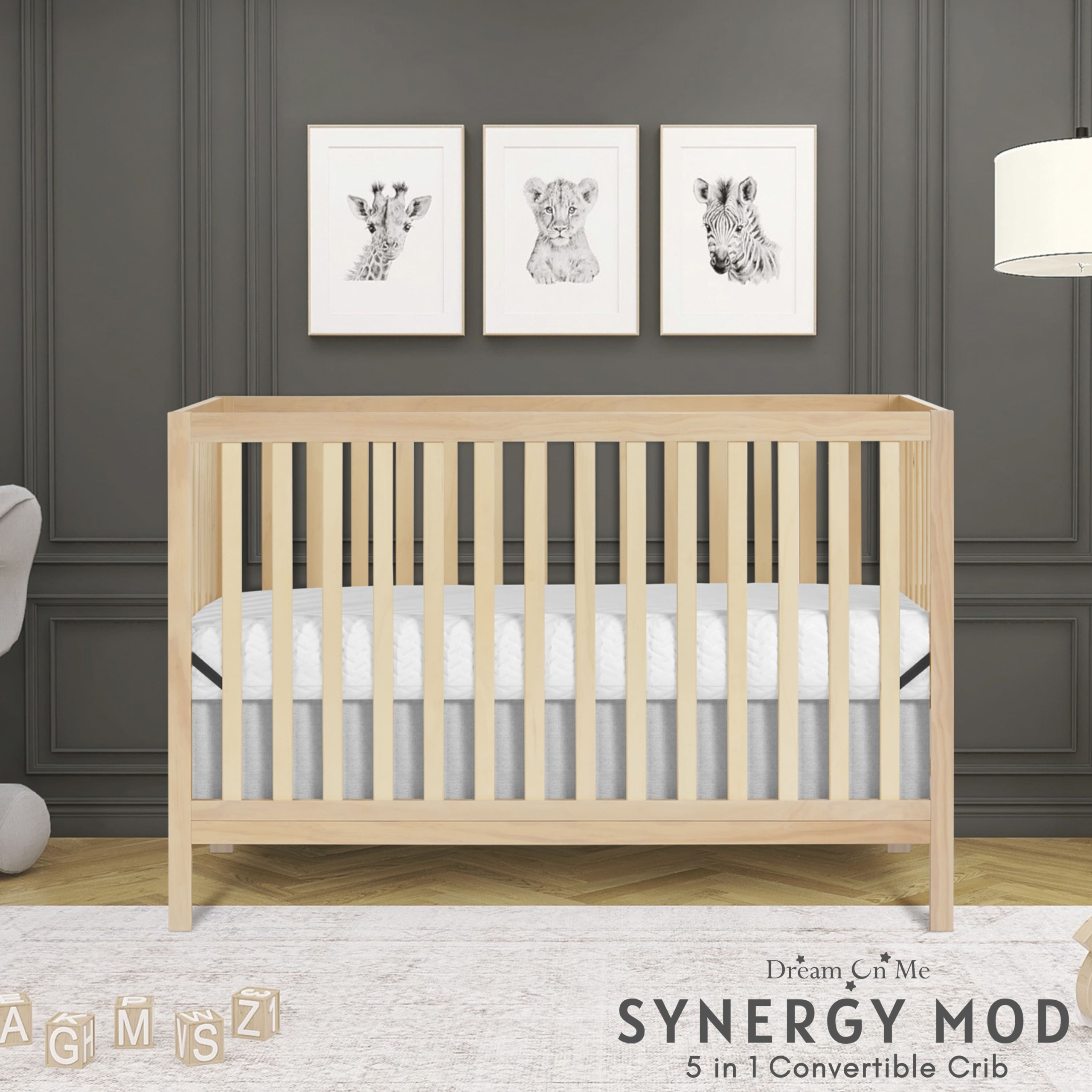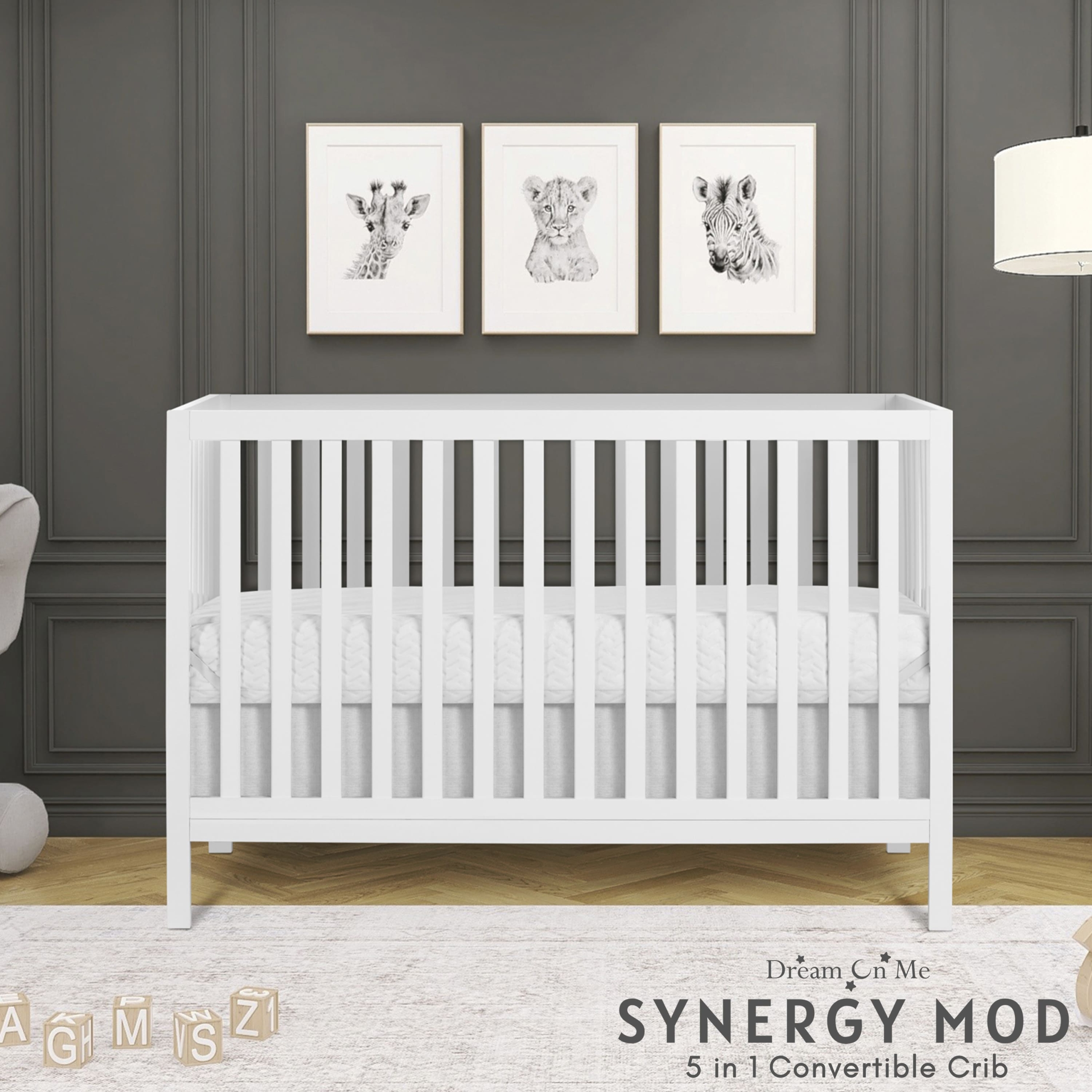 Créez un espace de chambre pour votre tout-petit qui soit agréable à regarder, pour ces précieux moments qu'il passe à dormir. Le berceau Dream On Me Synergy MOD est le mélange parfait de style, de fonctionnalité et de sécurité pour votre tout-petit. Il est merveilleusement conçu pour accompagner votre enfant à chaque étape de sa croissance, car il se transforme sans effort d'un berceau en lit pour tout-petit, en lit de repos et en lit pleine grandeur, répondant à ses besoins en constante évolution. Soyez tranquille en sachant que le berceau Dream On Me Synergy MOD répond aux normes de sécurité les plus élevées, car il est certifié JPMA et Greenguard Gold et conforme aux normes ASTM/CPSC. Fabriqué à partir de bois de pin durable de Nouvelle-Zélande, doté de broches en bois et d'un support de matelas en métal, ce berceau assure à la fois durabilité et stabilité. Le berceau Dream On Me Synergy MOD est disponible en 5 belles finitions – Blanc, Espresso, Naturel, Gris froid et Noir mat, qui vous permettent de créer la chambre de vos rêves – contemporaine, fantaisiste, féerique, vintage – laissez votre imagination régner en maître ! Les dimensions du produit sont 53,18″ L X 29,6″ L X 35″ H, avec un poids de 34 lb.