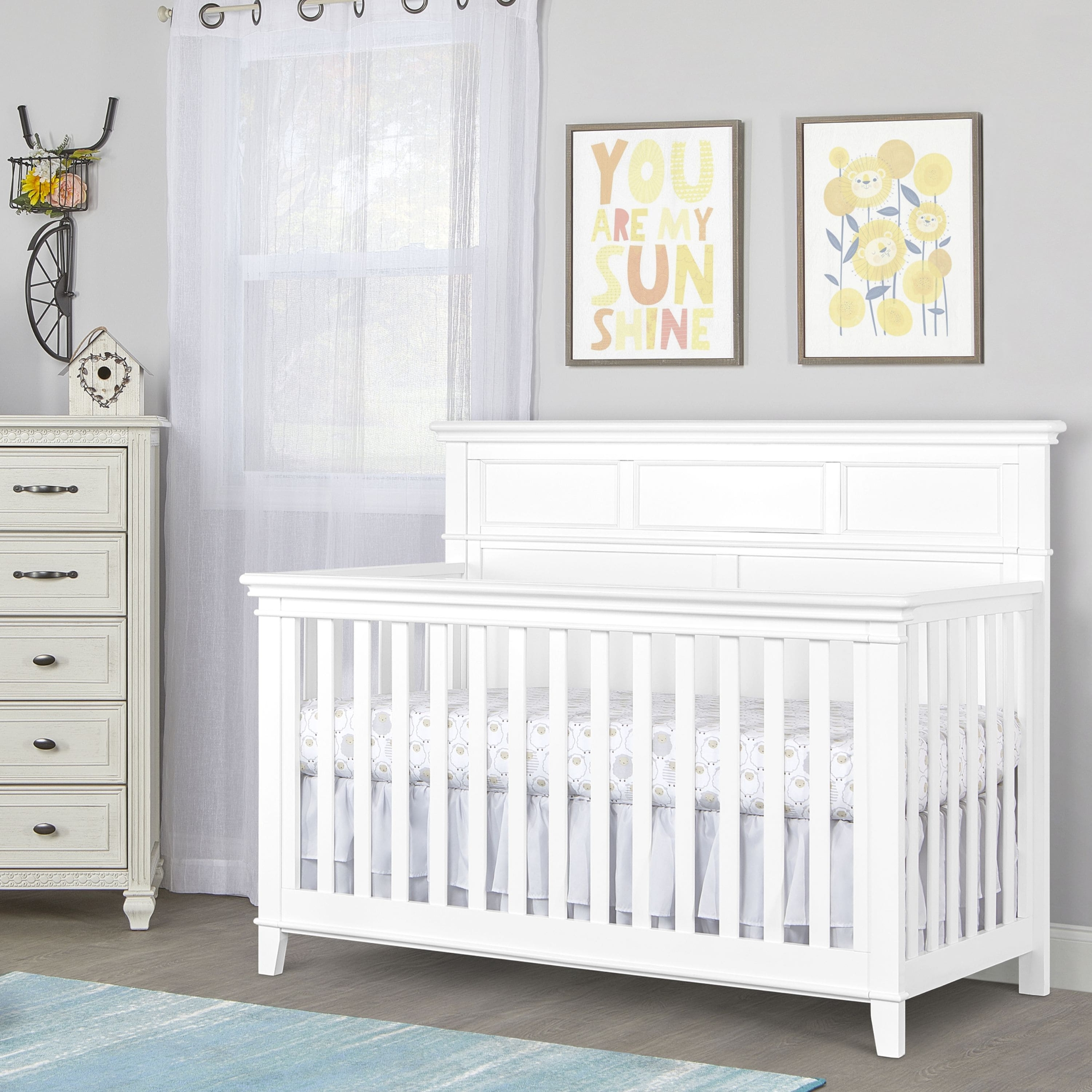 Dream On Me Blue Ridge crib captures a transitional styling with a full panel headboard design, this crib offers lavish sophisticated elements that bring a little modest simplicity to an ageless nursery. The Blue Ridge crib is designed to converts to a toddler bed and day bed to accommodate your growing child (conversion rails sold separately). This crib can be a mix or match with other furniture, glossy accents or neutral color schemes or go with a vintage or antique feel by combing patterns and colors to create a one of a kind nursery.