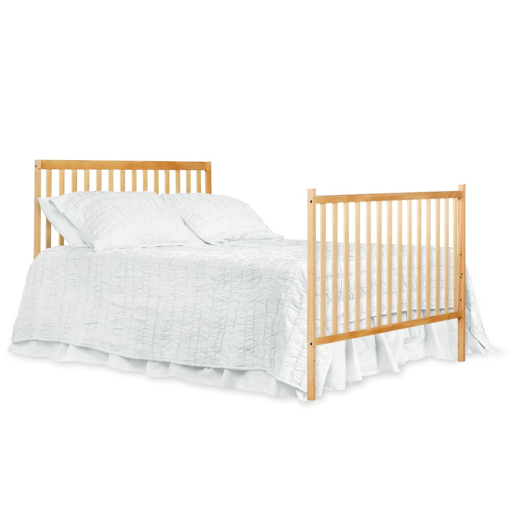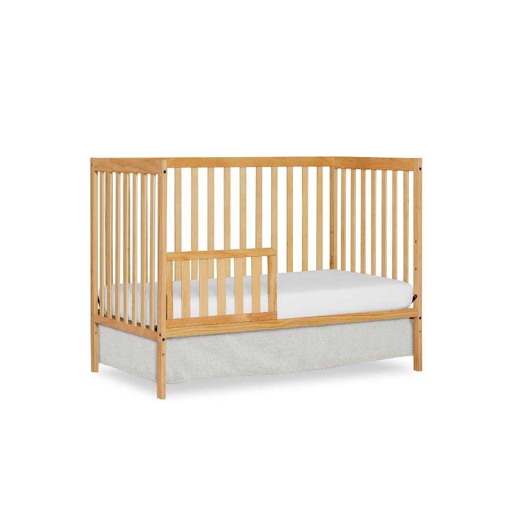 The Dream On Me Synergy 5-in-1 Convertible Crib is the perfect blend of style and substance, bringing together contemporary design with abundant features and a focus on safety. This gender-neutral crib grows with your child! It converts from a crib to toddler bed, toddler bed rail sold separately) a daybed and full-size bed (full-size bed frame and mattress not included). It also comes with a 3-position adjustable mattress support system. Safety and durability are never a concern with the Synergy Convertible Crib. It is built to last, made out of solid reclaimed New Zealand pinewood. All Dream On Me cribs is JPMA certified and meet all applicable ASTM and CPSC standards. All of our products are tested by third-party labs for lead and other toxic elements to meet or exceed CPSC and ASTM safety standards. The Synergy comes in beautiful finishes that allow you to create the nursery of your dreams – contemporary, whimsical, fairy, vintage – let your imagination reign supreme! This is a standard full-size crib and measures 53.0″ L x 29.0″ W x 39.0″ H inches. For the best fit, we recommend any Dream On Me or Evolur full-size, non-toxic, Greenguard certified mattress.