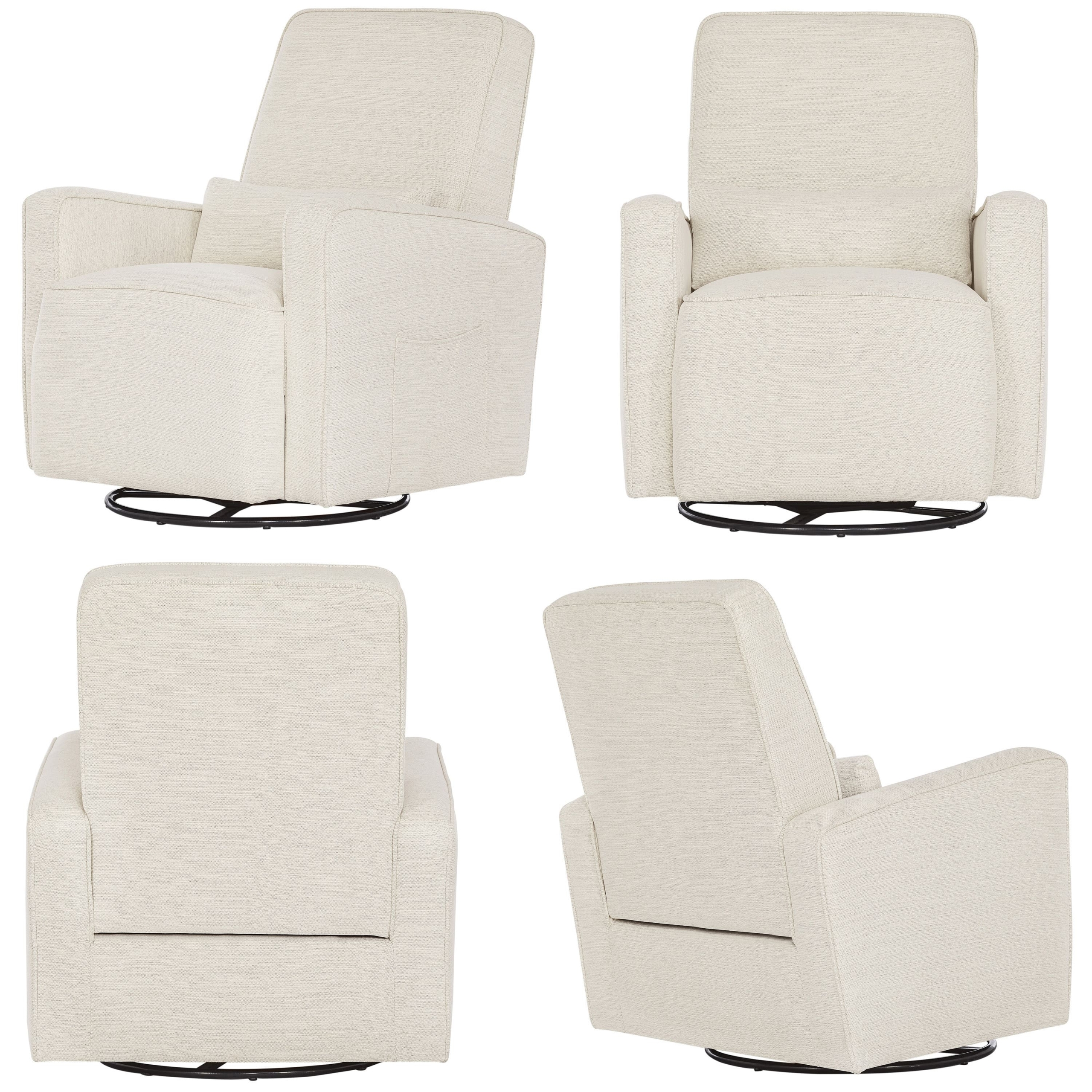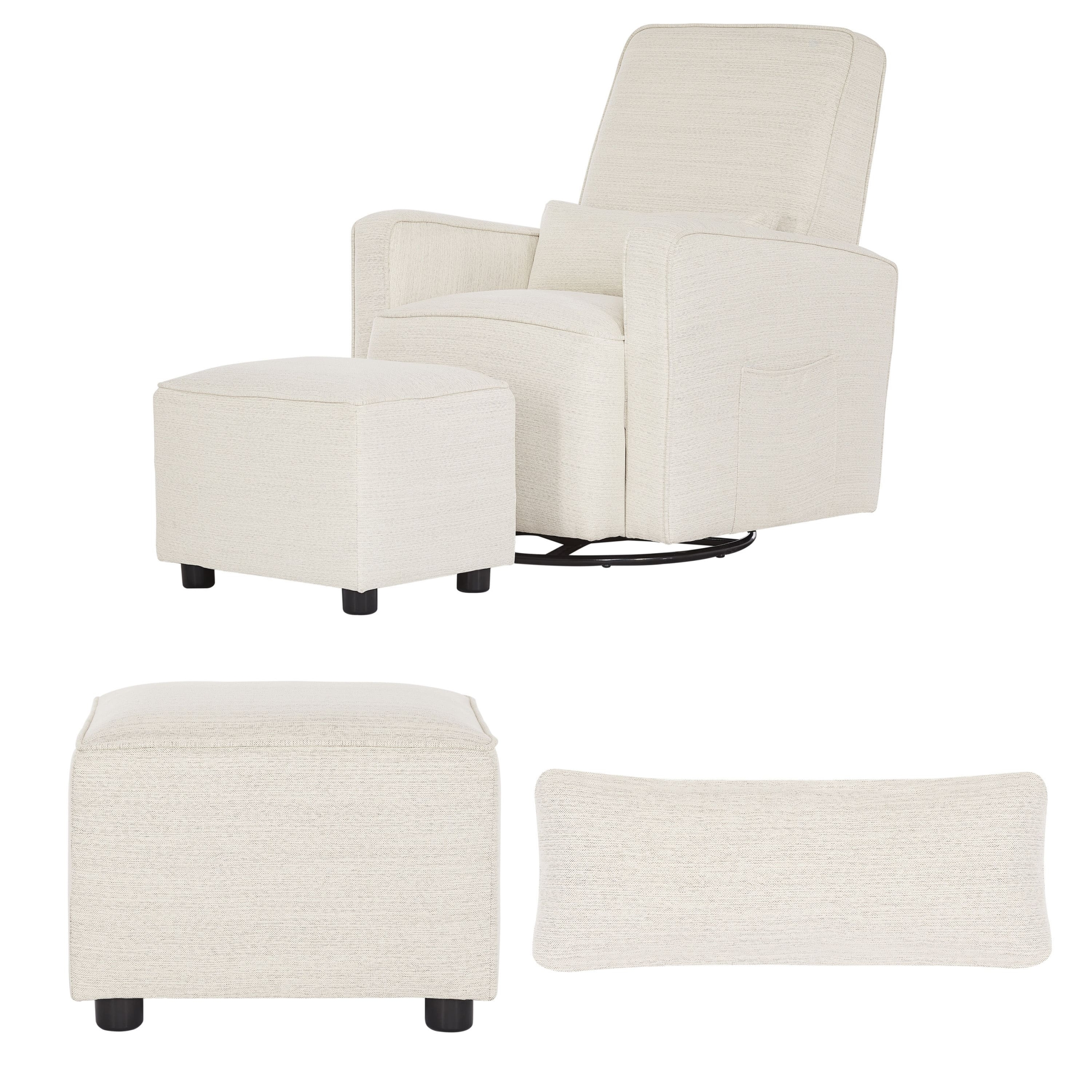 Transform any corner of your home into a tranquil escape of comfort with Upholstered Holland Swivel Glider which was designed to meet parents and baby needs from feeding to story time. This modern glider is as cozy as it is functional, featuring a high backrest for head and neck support, effortless 360° swivel motion, and forward/backward gliding. The Holland glider offers a thick foam cushion, durable soft fabric with a lumbar support pillow, sleek arms. unique welt trims and pairing ottoman. The modern design fits as an accent chair in just about any room in the house. The Holland is also Greenguard Gold certified, ensuring it is safe for your baby’s environment.