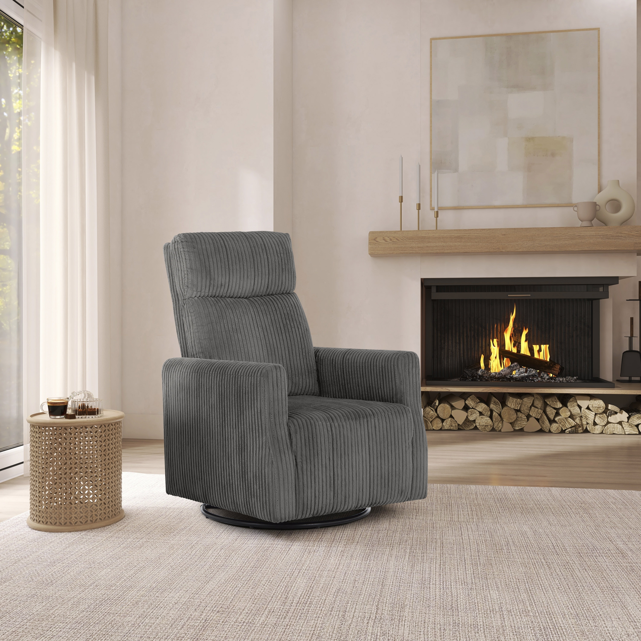 Get ready to redefine casual comfort! Relax in the cloud-like comfort of the Dream On Me Oliver Swivel Glider, featuring a 360-degree swivel and plush corduroy fabric. This chair is designed to provide the ultimate in comfort with its supportive cushioning. The contemporary design and rich fabric choices make it a stylish addition to any nursery, offering a cozy spot for bonding with your baby. This thoughtfully designed glider comes in two pleasing finishes – Carbon Grey & Thunder and FSC Certified for a sustainable choice. Product dimensions are 31″ L x 27″ W x 39.5″ H with a weight of 57 Lbs.